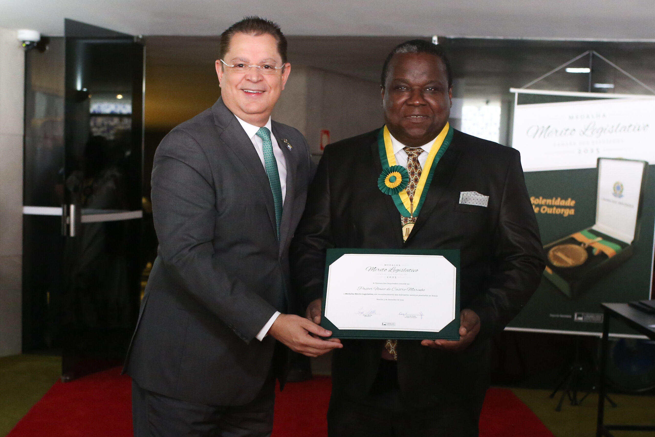 A Câmara dos Deputados realizou, nesta quarta-feira, a solenidade de entrega da Medalha do Mérito Legislativo, a mais alta honraria concedida pelo Parlamento brasileiro. Entre os agraciados deste ano esteve o pastor Flávio Marinho, presidente da Convenção CEADER há quatro anos e 2º tesoureiro da Mesa da Convenção Geral das Assembleias de Deus no Brasil (CGADB). A indicação foi feita pelo deputado federal Sóstenes Cavalcante (PL-RJ), que ressaltou a trajetória e o compromisso do líder religioso com a igreja e com a sociedade fluminense.